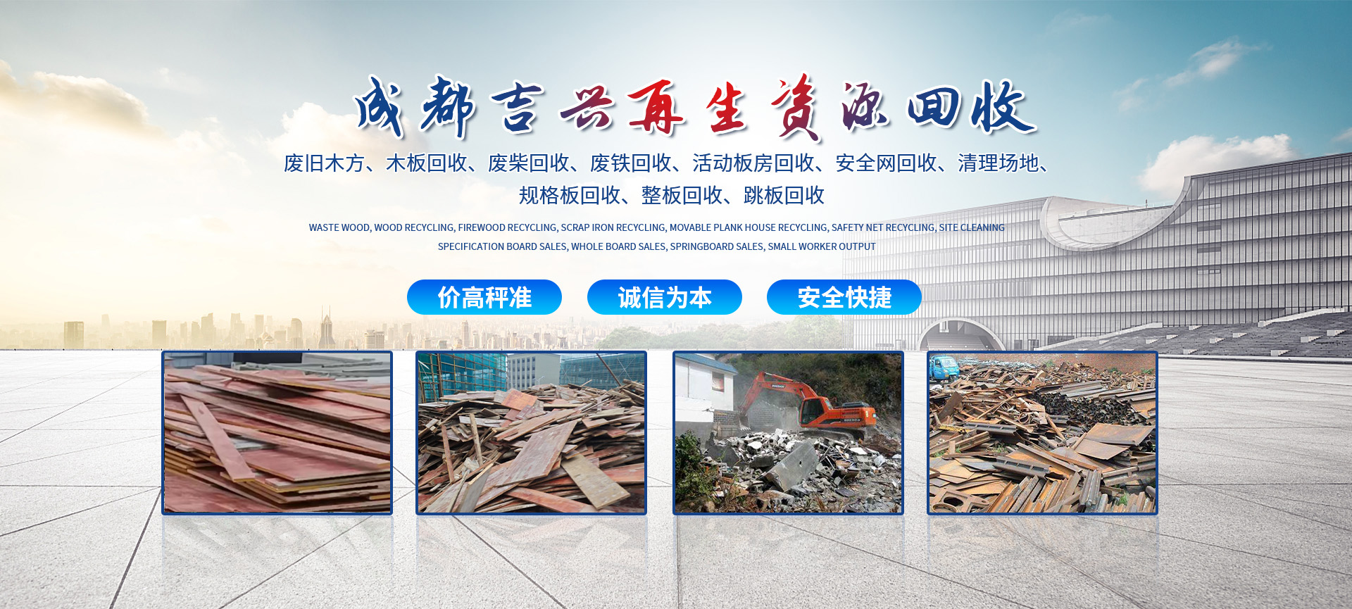 成都吉興再生資源回收有限公司位于成都市雙流區(qū),是一家長(zhǎng)期向西南各地工業(yè)、企事業(yè)單位,以“價(jià)高秤準(zhǔn),誠(chéng)信為本”的原則,熱情周到的服務(wù),良好的商業(yè)信譽(yù)與個(gè)人及多家企業(yè)、建立了良好的合作關(guān)系。我們是您值得信賴(lài)的我們將以合理的價(jià)格為您提供優(yōu)質(zhì)的服務(wù), 我們主要以:建筑材料回收為主。包含(廢舊木材回收、木方回收、廢鐵回收、活動(dòng)板房回收、廢柴回收、清理場(chǎng)地、整板回收、規(guī)格板回收以及跳板回收等等)。以“價(jià)高秤準(zhǔn),誠(chéng)信為本”為原則,信譽(yù)至上的態(tài)度向社會(huì)各界朋...